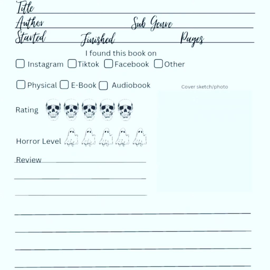 Whether you’re a lifelong horror reader or someone who just keeps coming back to darker stories, this reading journal is designed to help you track, reflect on, and remember what you read—and how it affected you.